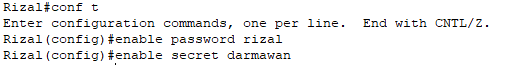Di Cisco ada 2 tipe untuk pemberian password , 2 cara tersebut adalah