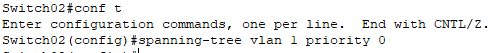 Sekarang kita akan merubah Root Bridgenya menjadi ke kiri, ada dua acara untuk merubahnya, pertama dengan priority dan kedua menggunakan bandwidth. Seperti yang kita tahu bahwa switch dengan priority terkecil akan menjadi Root Bridge. Maka dari itu kita akan mengubah priority di Switch 2 menjadi lebih kecil dari Switch yang sebelah kiri,. Kita akan mencoba menggunakan metode priority, lakukan seperti gambar berikut