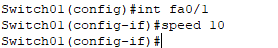 Selanjutnya kita akan membuat port yang di bloknya ke interface Fa0/1 atau port yang diatasnya dengan cara mengecilkan bandwithnya